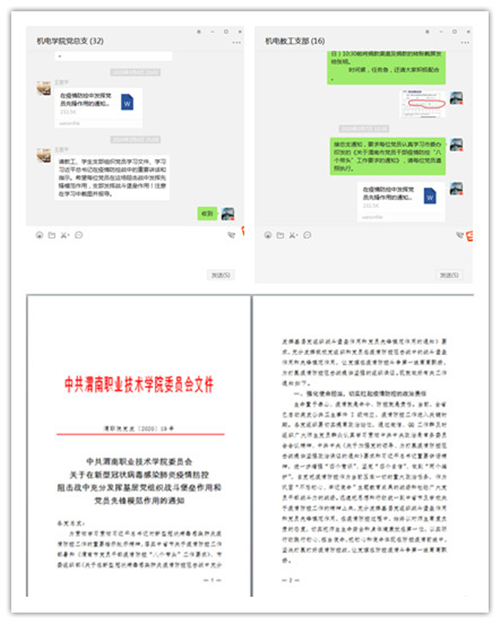 根据公司党委和机电党总支安排,2020年3月7日至3月11日,365英国上市教工支部书记李敏宁利用微信群,组织全体党员同志,在保证学校停课不停学,备好课、上好课的前提下,利用课余时间,学习19号文件,认真领会《关于渭南市党员干部疫情防控“八个带头”工作要求的通知》精神。