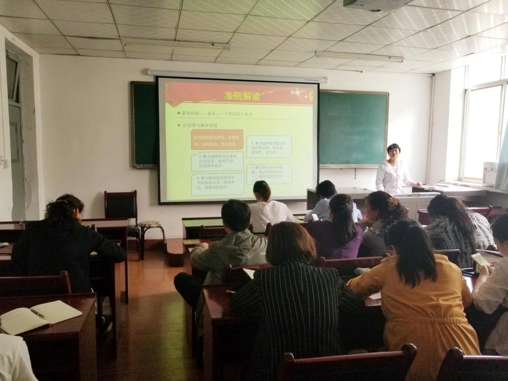 为深入学习贯彻党的十九大精神和中省市纪委全会精神,推动党风廉政建设,把“学党章国法,推进全面从严治党”为主题的廉政教育月活动落到实处,2018年5月23日下午,在朝阳校区一号教学楼203室,公司党总支组织全体党员上党课,王云侠同志为大家进行了《关于新形势下党内政治生活的若干准则》的解读和培训。